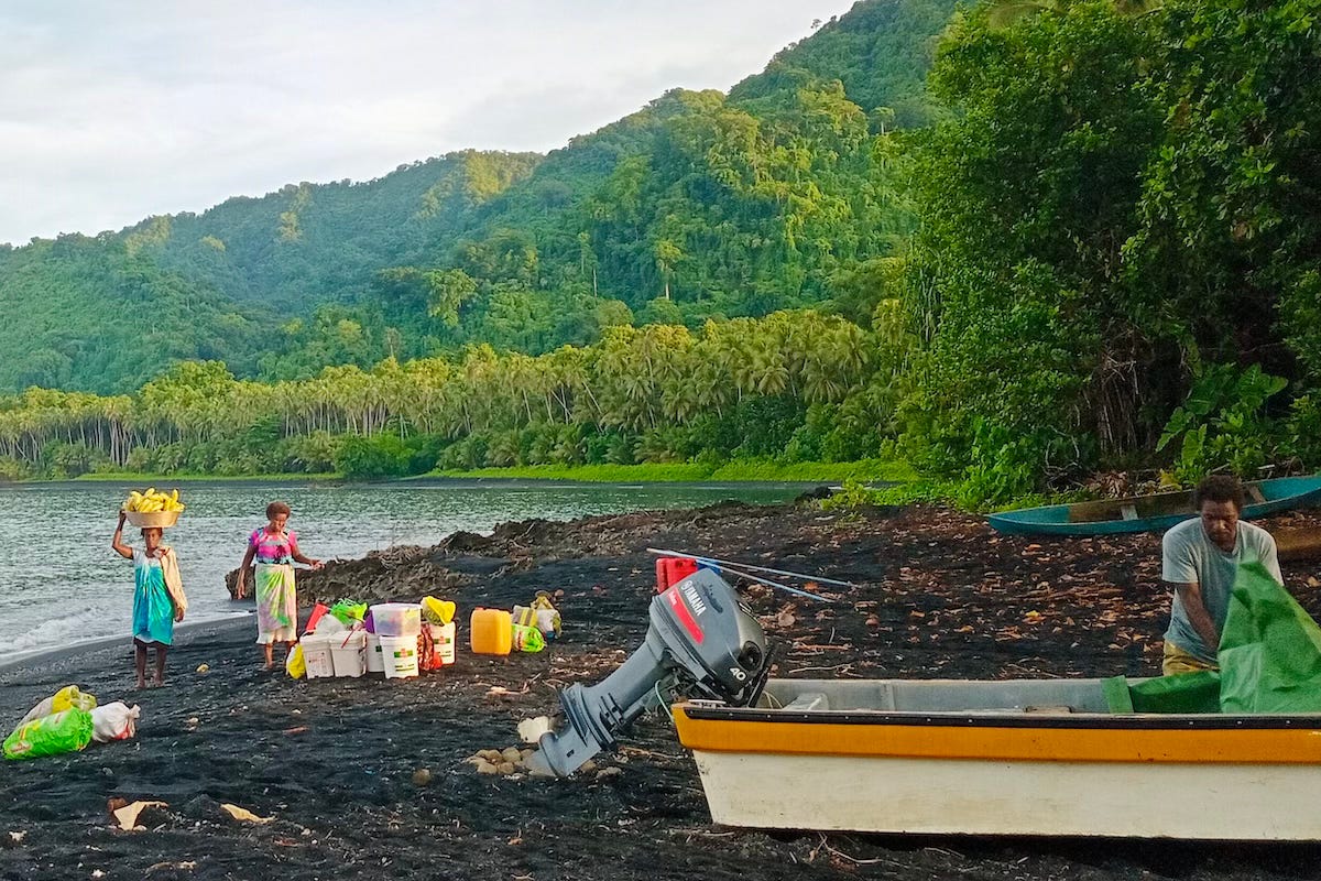We arrived at Baniata in the golden light of late afternoon, the black sand beach warm and welcoming, not sizzling as I’d feared. Locals led us through the village between clusters of stilted houses and meandering flower gardens, to the traditional bungalow where we’d sleep the night.
